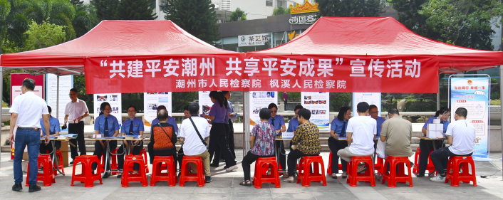 为全面贯彻党的二十大精神,深入落实习近平法治思想,加大平安潮州建设和检察工作宣传力度,助力提升人民群众对平安潮州建设的知晓度、参与度和满意度,10月24日,潮州市检察机关开展以“共建平安潮州 共享平安成果”为主题的宣传活动。两级检察院检察干警深入村居、社区、学校、企业、市场开展宣传活动,把平安潮州建设主题融入检察机关的普法宣传、融入人民群众的生活。潮安区检察院检察官深入重点企业,面向企业员工进行宣讲;饶平县检察院检察官走进中学,为学生上法治课;湘桥区检察院检察官走进高厝塘村,向村民普及法律常识;枫溪检察院检察官深入沿街商铺,向商户讲解法律知识……全市两级检察院创新宣传方式,多领域、多层次、多形式开展“五进”宣传活动,切实提升人民群众对平安潮州建设的知晓率、参与度。