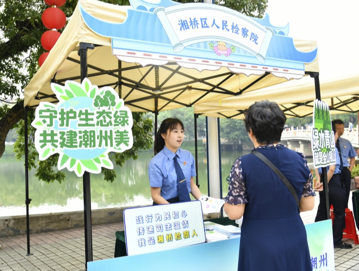 6月5日,潮州市两级检察院在潮州市西湖公园开展“检察蓝守护生态绿 共建美丽潮州”为主题的宣传活动,通过检察官访谈、生态保护普法主题宣传、少儿共绘生态保护长卷等形式,持续深化生态文明司法保护,集中展现潮州市检察机关助力生态环境保护的成效,营造全社会共同守护生态环境的良好氛围。