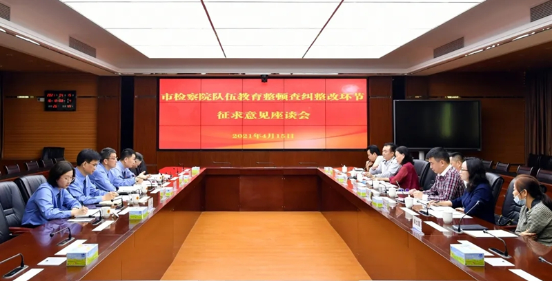 4月15日下午,市检察院召开队伍教育整顿查纠整改环节征求意见座谈会,邀请人大代表、政协委员、人民监督员、律师、案件当事人等参加座谈会。会议通报了市检察院队伍教育整顿查纠整改环节的工作情况,公布了整治顽瘴痼疾的主要内容和措施,诚恳听取各位代表对检察工作、检察队伍和领导班子提出的宝贵意见。