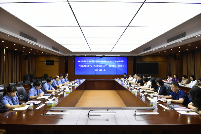 市检察院联合湘桥区检察院举办检教同行 共护成长检察开放日活动,邀请人大代表、政协委员、教师、学生代表以及教育、民政、司法、共青团、妇联、关工委等部门负责同志,通过座谈会的形式共同探讨守护未成年人健康成长的举措,并就如何加强协作配合推动六大保护进行了深入交流。与会代表观看了潮州市未成年人检察工作宣传视频,听取了近年来潮州市检察机关未成年人检察工作情况汇报,对检察工作给予了充分肯定,并积极建言献策。